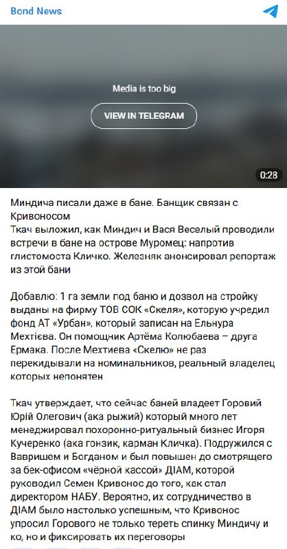 ️ Бондаренко: Міндіча могли записувати в бані, пов’язаній одночасно з людьми Єрмака та екскомандою Кривоноса