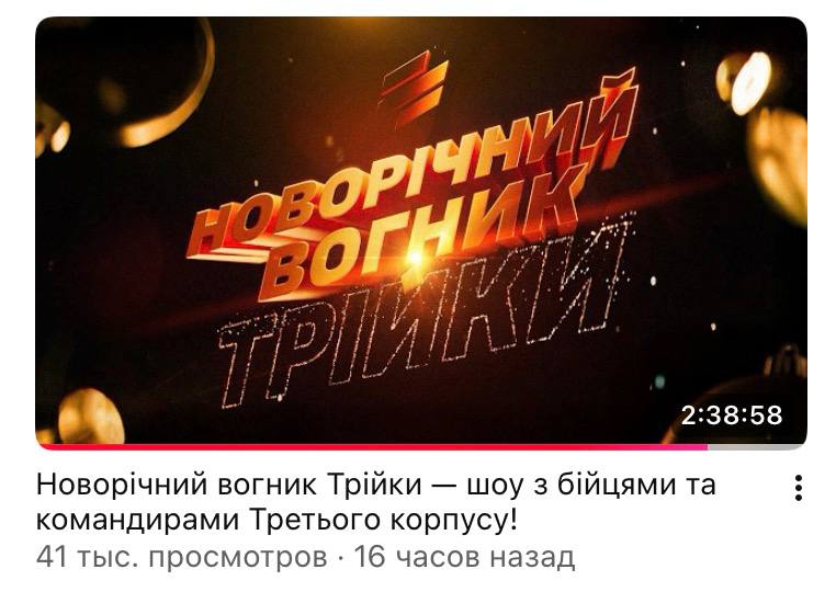 А Третій армійський корпус зняв власне розважальне новорічне шоу з виступами зірок, інтервʼю з військовими і, звісно ж, самим Білецьким.