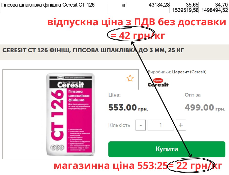 У кошторисі “Буд Кепітал Групп” непластифіковану ПВА-дисперсію вказали по 379 грн/кг (ринок — 146–148 грн), шпаклівку — 42 грн/кг (ринок — 22–24 грн), вікна — 8641 грн/м² (ринок — 4386–6720 грн), утеплювач — 7690 грн/м³ (ринок — 3140–3783 грн). Ймовірна переплата — понад 4 млн грн. Експертизу провела “Укрдержбудекспертиза”.