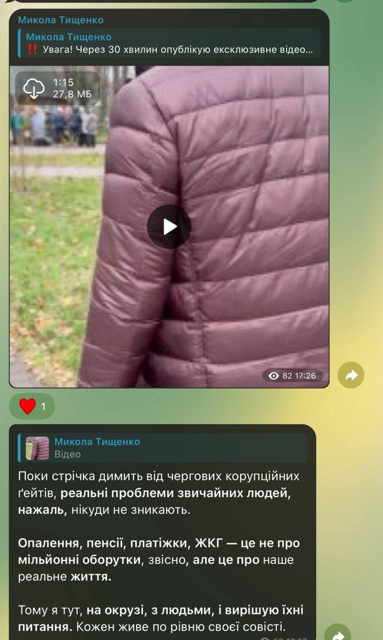 Тим часом, кум Єрмака – Микола Тищенко одразу відмежувався від нього та почав демонструвати активну роботу з населенням