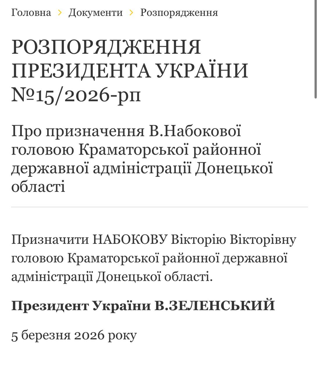 ️Зеленський призначив Вікторію Набокову головою Краматорської районної військової адміністрації, раніше вона виконувала обовʼязки голови