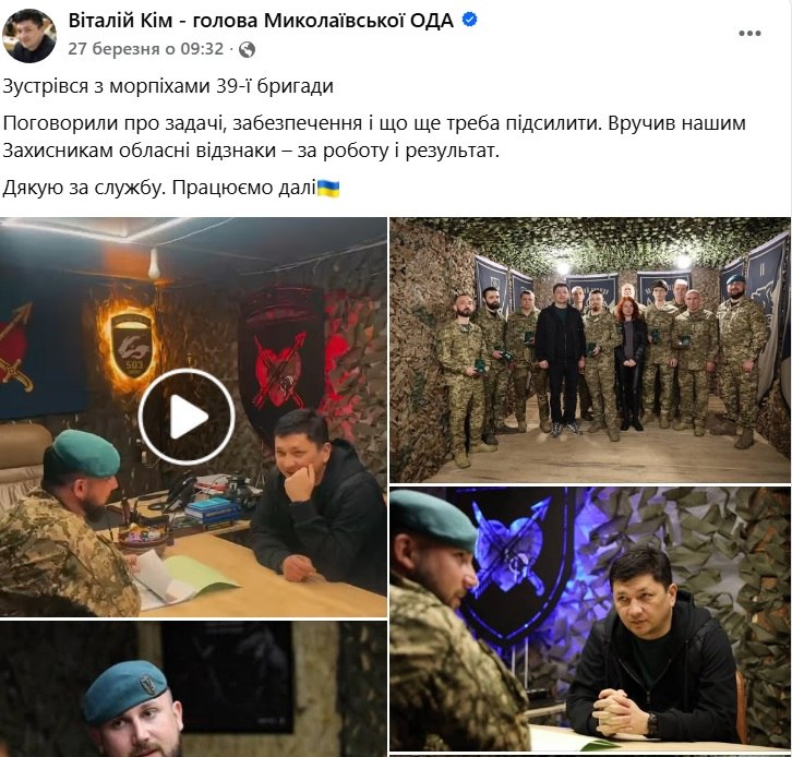 Лише за останні дні він з’явився на похованні п’ятьох воїнів з Миколаївщини на Національному військовому меморіальному кладовищі під Києвом, дав інтерв’ю «Економічній правді», раніше зустрічався з морпіхами 39-ї бригади та говорив з Укрінформом.