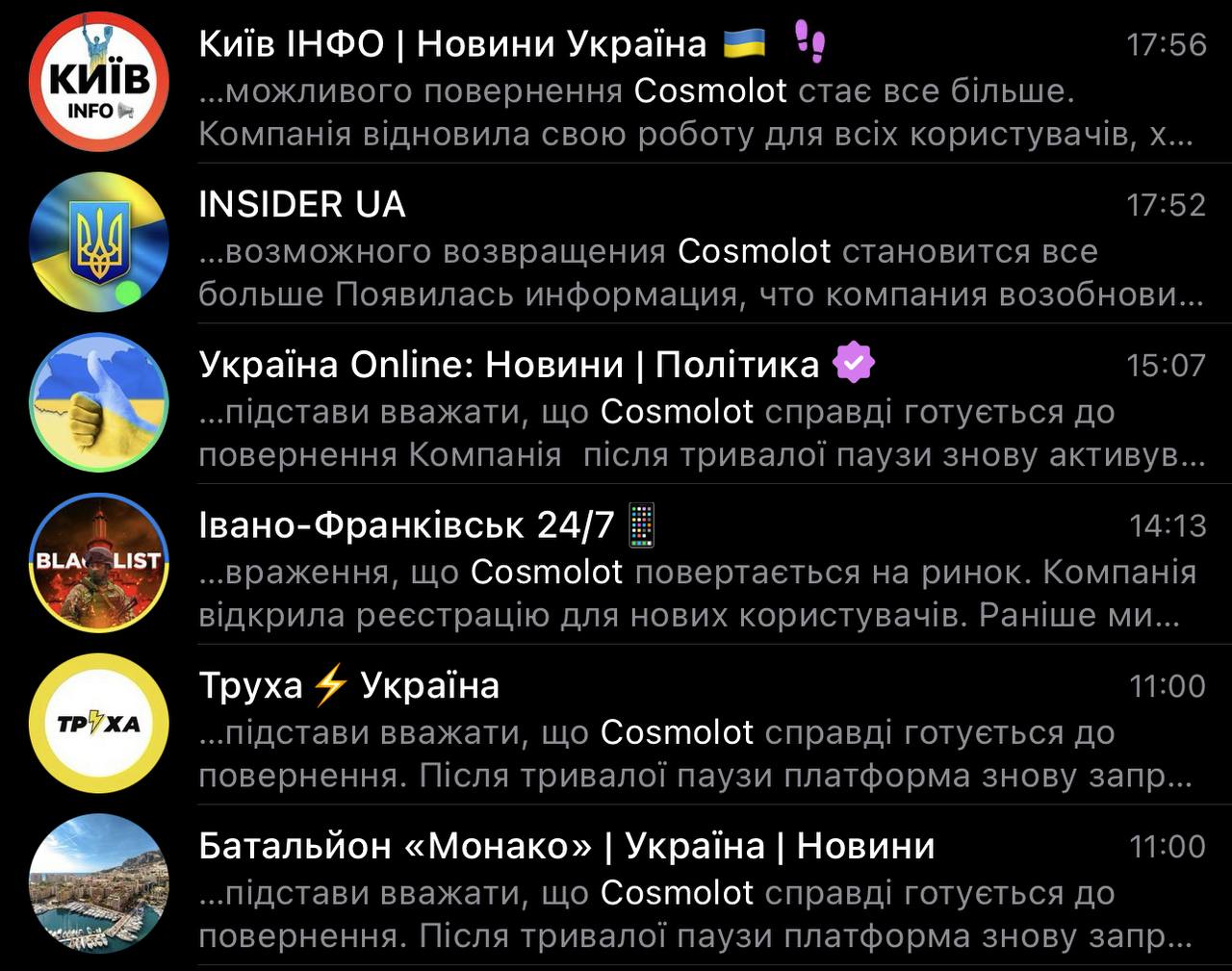 При цьому, піарить це «грандіозне повернення» пул близьких до ОП телеграм-каналів, а скандально відомий тг-канал «Джокер» навіть заявив, що Cosmolot – «порядні хлопці, які стали жертвами інтриг чиновників».