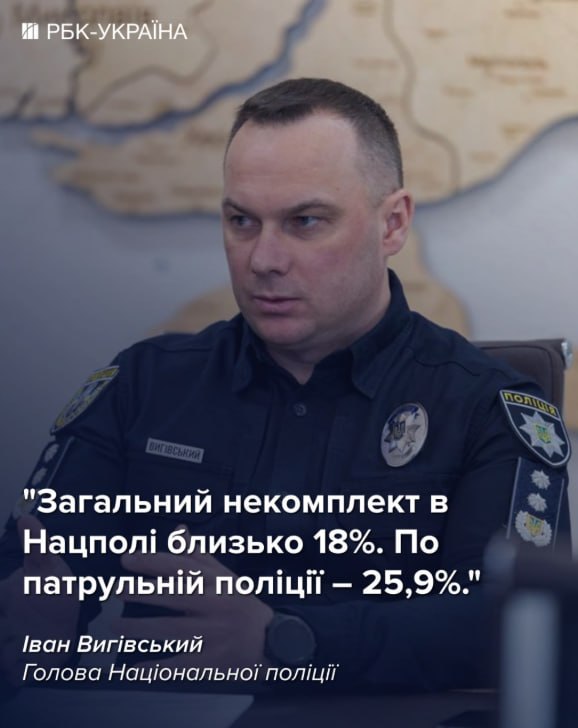 ️‼️Голова Нацполіції Іван Вигівський заявив лояльному ОП РБК-Україна, що «поліція самостійно не зможе виконати мобілізаційні завдання в повній мірі по ряду причин», пояснивши це «великим некомплектом НПУ» (близько 18%, а у патрульній поліції — 25,9%) та «доданими функціями, які зʼявились у зв’язку з війною».