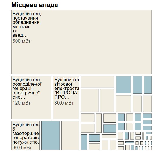 Водночас місцева влада реалізувала десятки менших проектів розподіленої генерації сумарною потужністю близько 600 МВт, які вже введені в експлуатацію.
