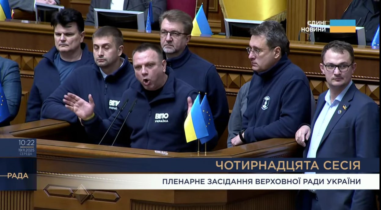 Тепер вони як в уніформі ходять в ньому у ВР і “світять” на трансляціях Ради. Примітно, що і до трибуни вони виходять усією “групою”.