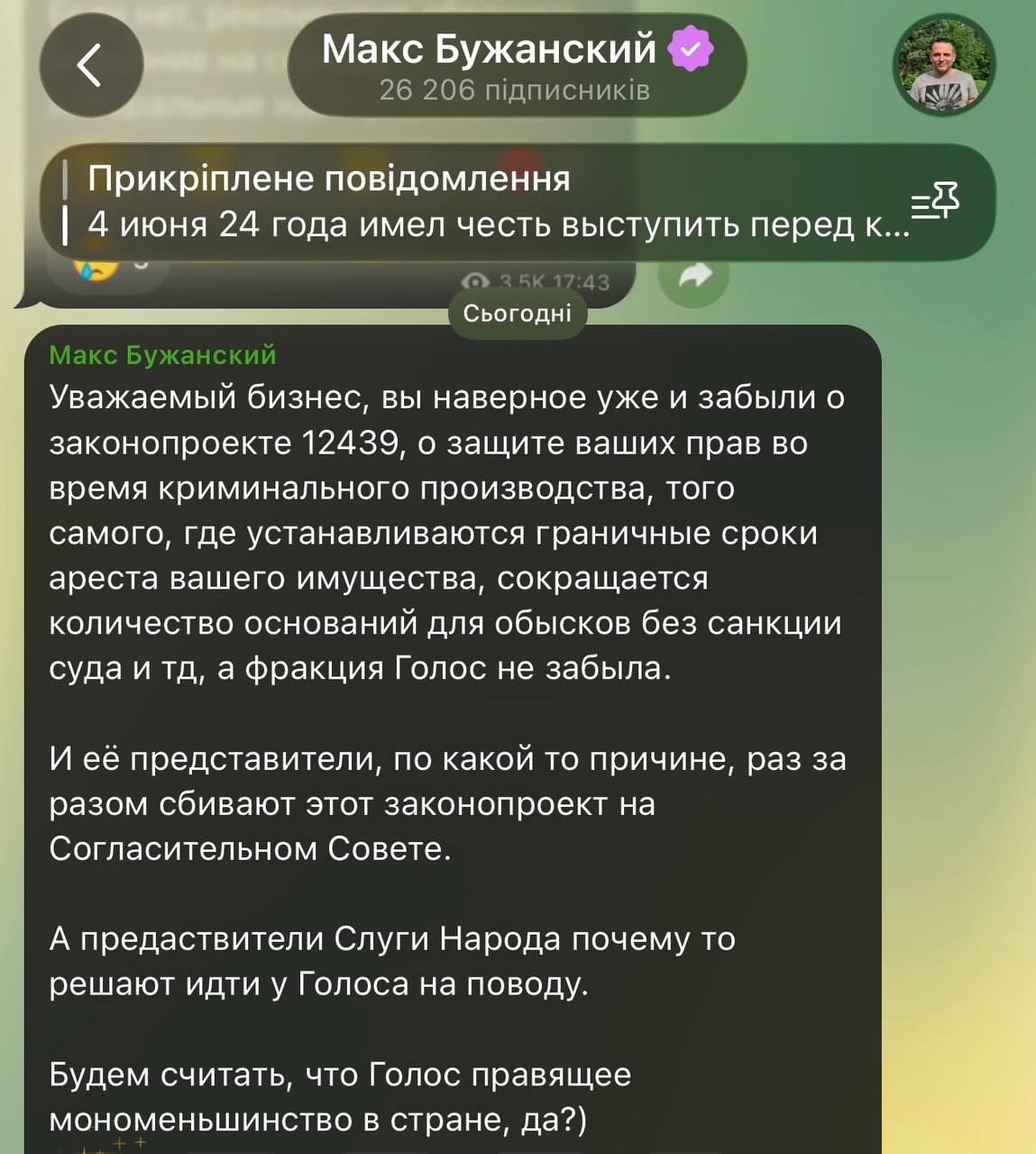 Так, Ярослав Железняк зокрема виділив пункти щодо реформи ДБР, тоді як Максим Бужанський, з огляду на це лякає бізнес, зокрема створенням «ще двох НАБУ, на додачу до вже існуючих.. які будуть займатися безпосередньо бізнесом».