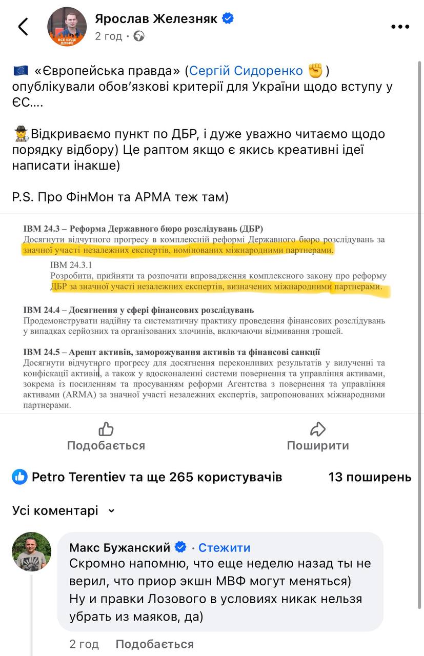 Тим часом, нардепи Железняк і Бужанський публічно обмінюються «теплими словами» – темою на цей раз стали обовʼязкові критерії для України до вступу до ЄС