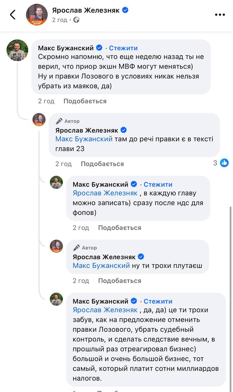 Цікаво, що після цієї дискусії Железняк закрив коментарі під цим дописом у Facebook.