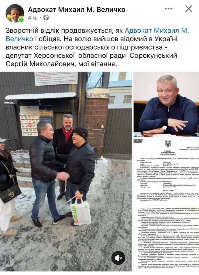 Депутат Херсонської облради від «Блоку Сальдо» Сергій Сорокунський-старший вийшов з СІЗО.