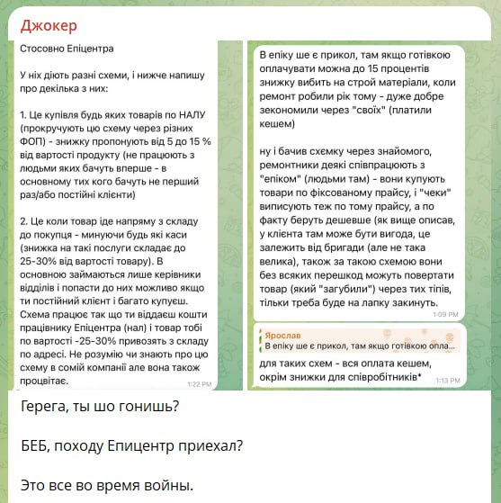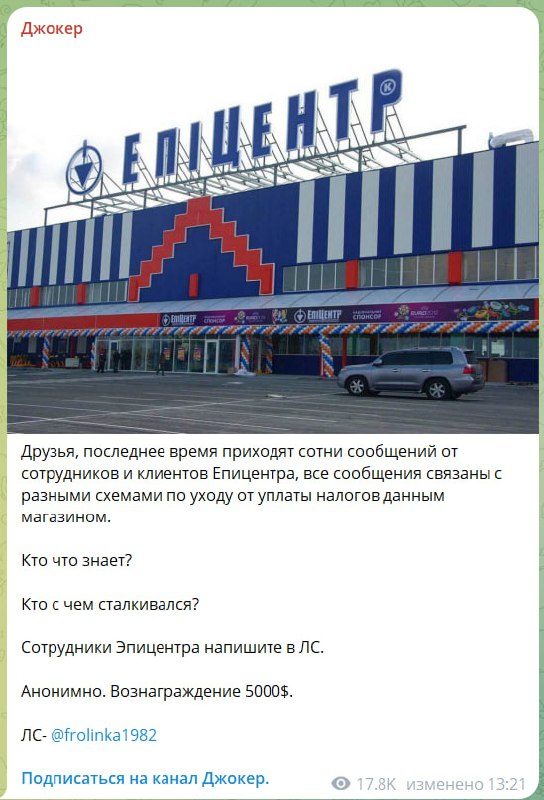 “Джокеру” замовили подружжя Герег та їхній “Епіцентр” Цілий день він присвятив тому, що розповідає як в мережі гіпермаркетів ухиляються від сплати податків через ФОПи, схеми із подарунковими сертифікатами, знижки за розрахунок готівкою або від сплати митних платежів. Під роздачу потрапили і мережа “Сільпо”, де працівників також змушують оформлювати ФОПи.
