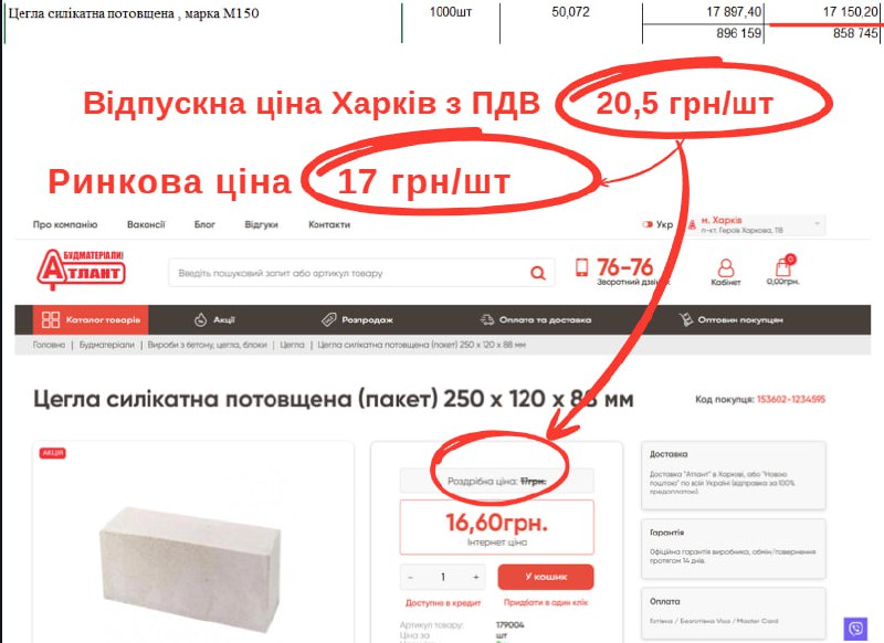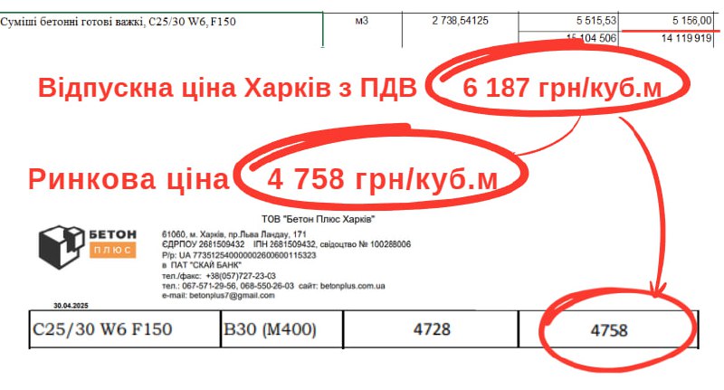 У кошторисі бетон, арматуру та цеглу врахували за цінами, що на 20–50% перевищують ринкові пропозиції. Видання зазначає, що потенційна переплата лише за цими позиціями може становити близько 7 млн грн.