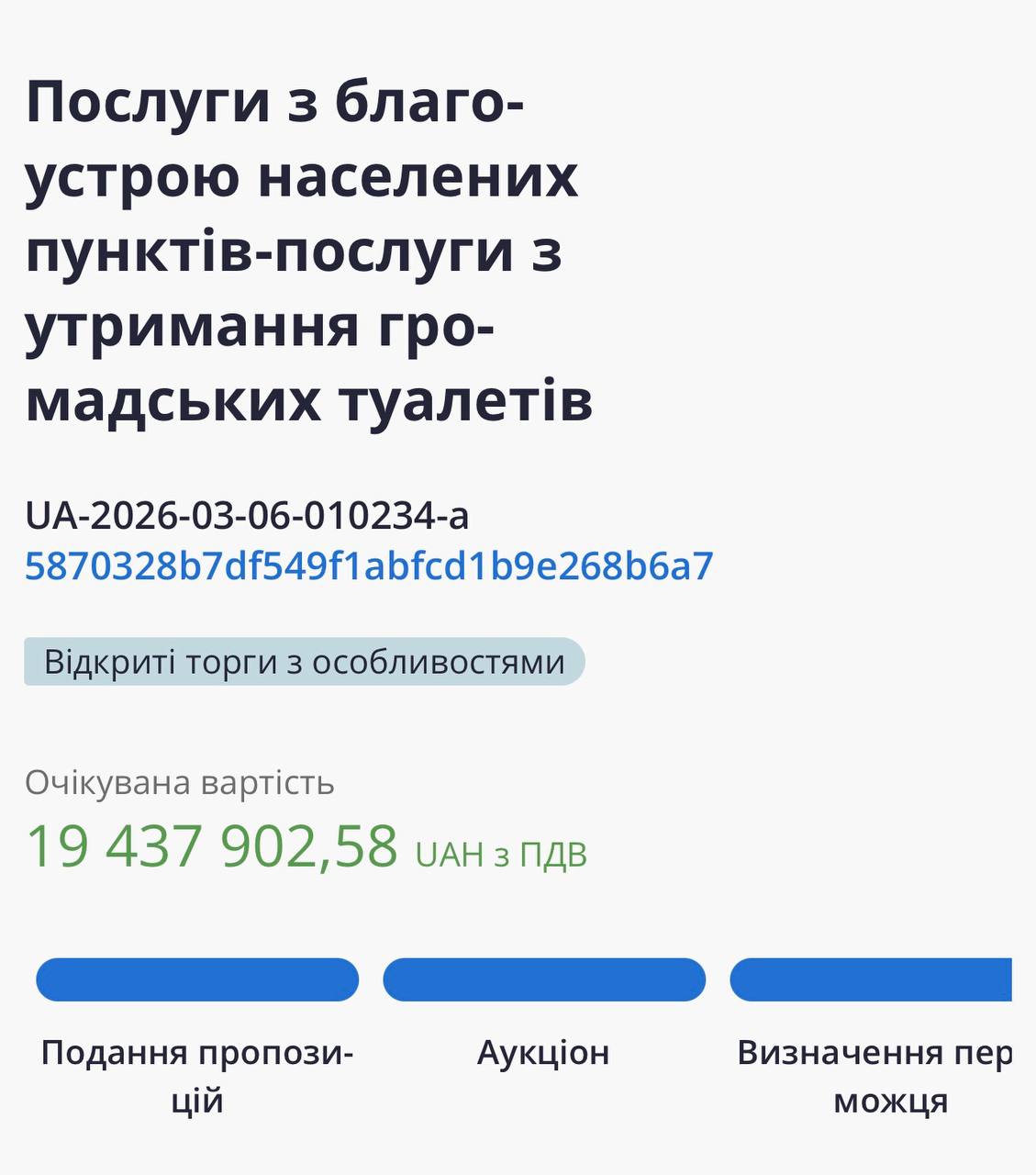 Нині договір з переможцем у стадії підписання.