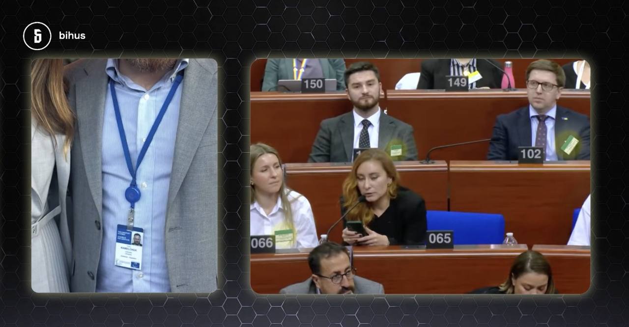 Не співпадають і бейджики учасників засідання ПАРЄ (як у Камельчука) та учасників форуму.
