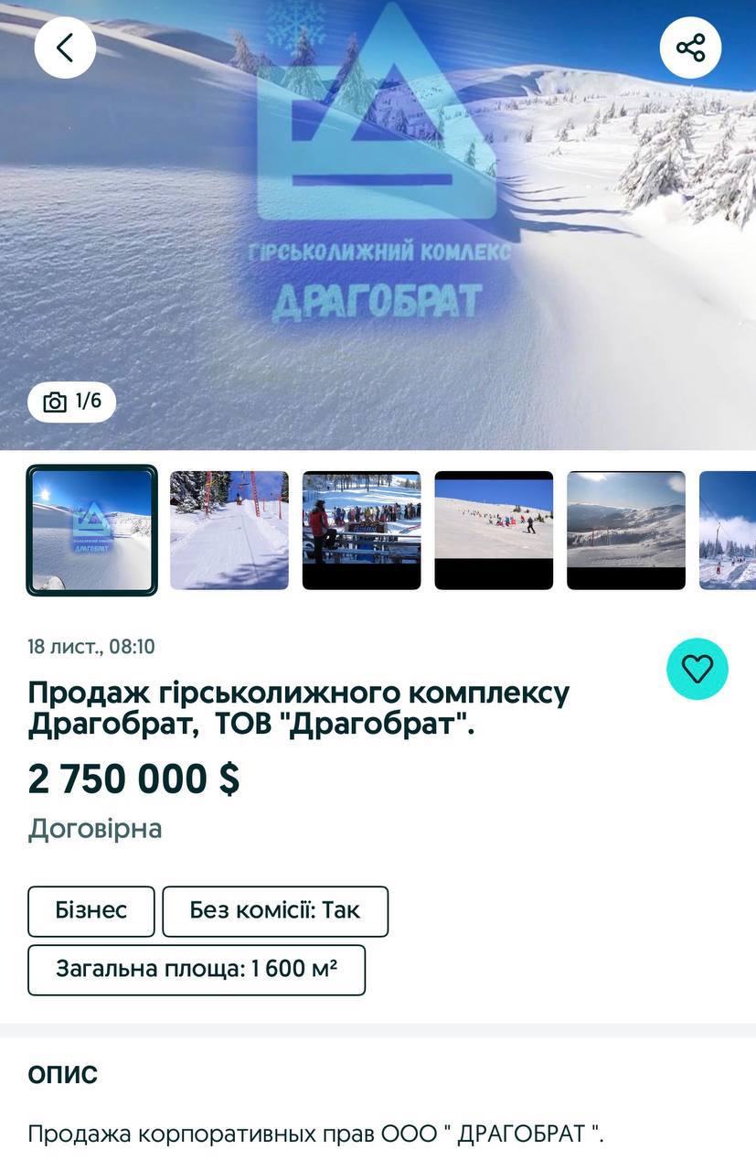 На OLX продають гірсько-лижний курорт “Драгобрат”
