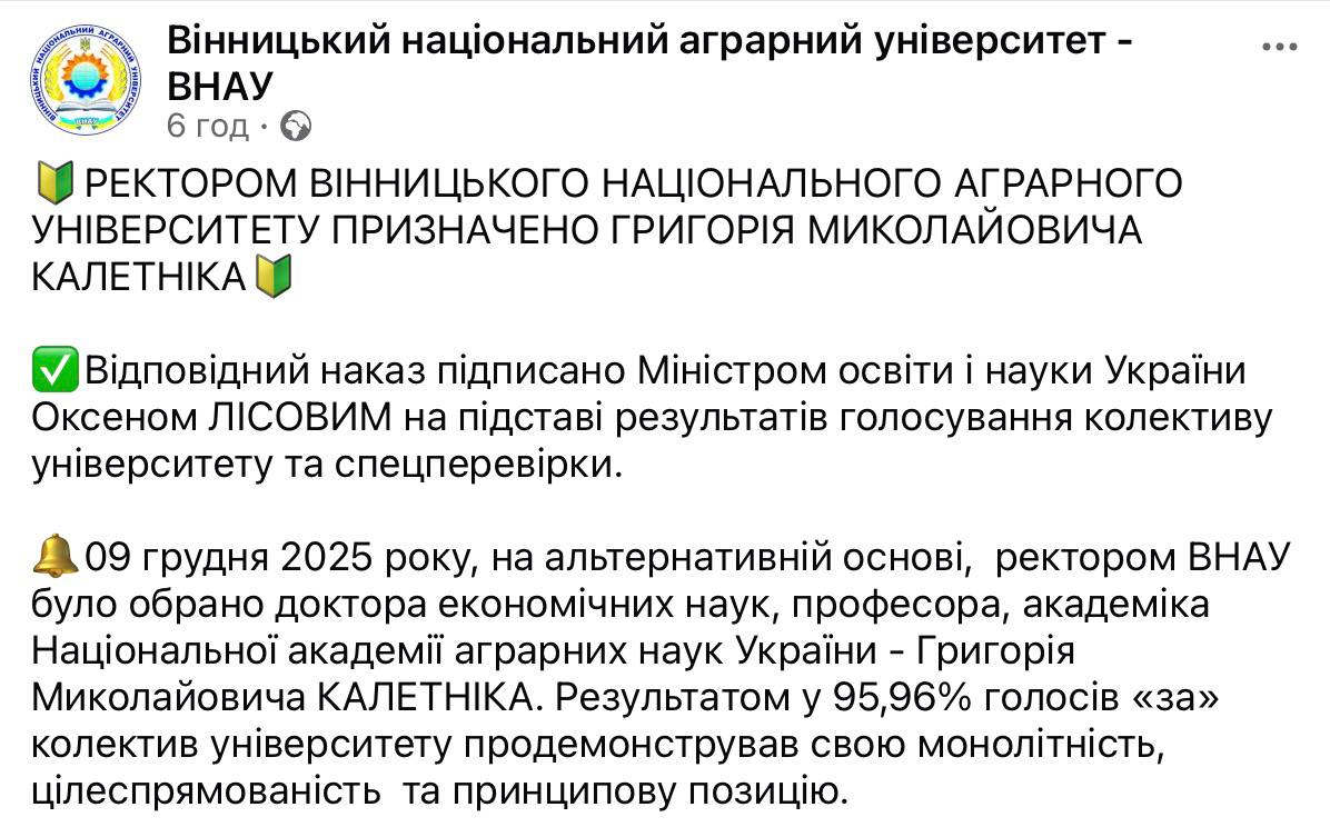 ️Офіційно: екснардеп-«регіонал» Калетник очолив Вінницький аграрний університет