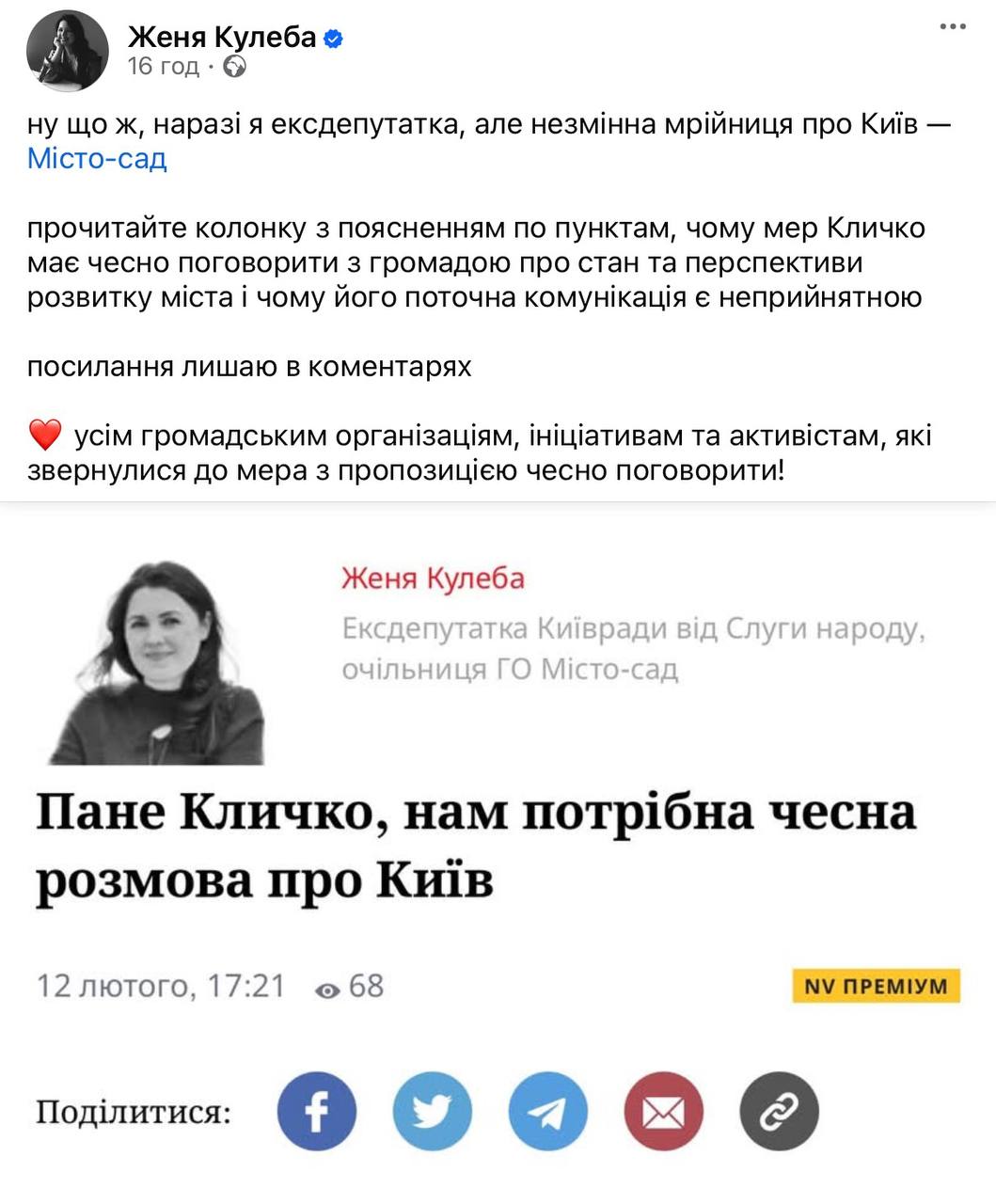 Тепер разом з іншими ГОшками закликає мера Віталія Кличка до діалогу. Що заважало вести цей діалог у Київраді – питання риторичне.