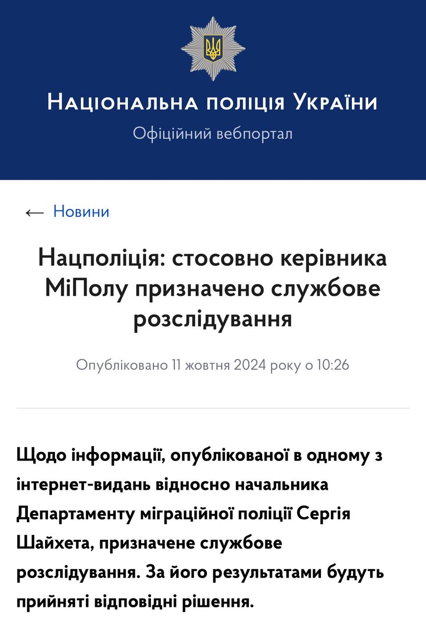 Екскерівник поліції Миколаївщини Шайхет, який засвітився в розслідуванні журналістів, звільнився з Департаменту міграційної поліції Нацполіції