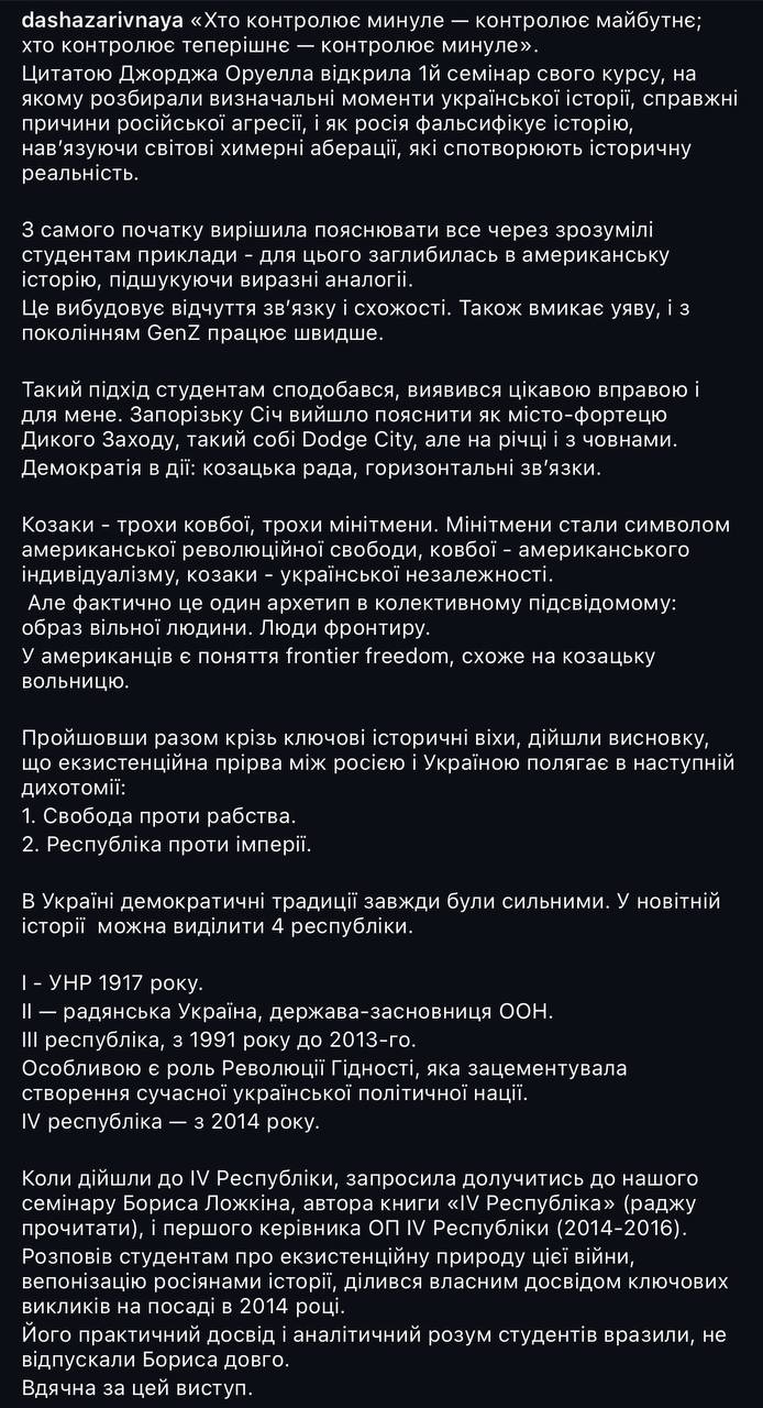 Екс-помічниця Єрмака Даша Зарівна під час свого навчання у США піарить ексочільника ОП часів Порошенка – Бориса Ложкіна – і запрошує його читати лекції нібито за його книгою, яку насправді за нього написав Володимир Федорін.