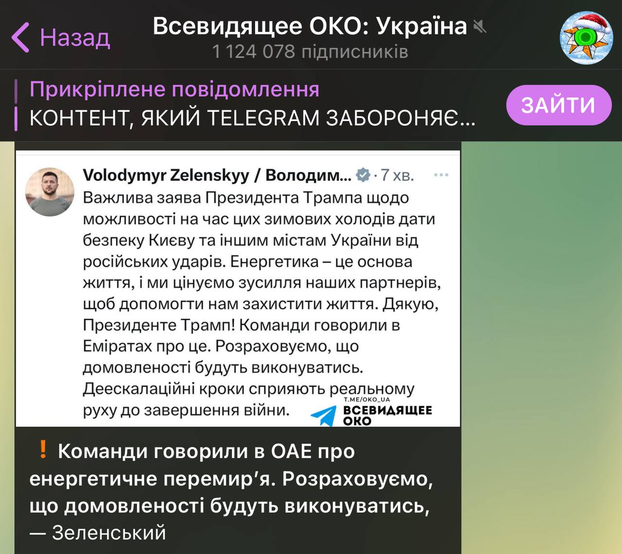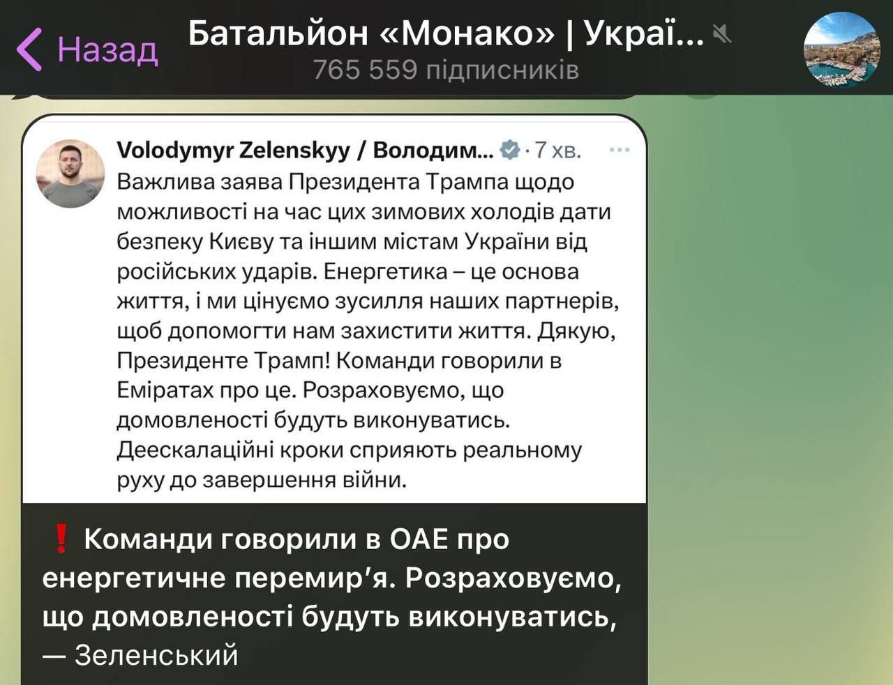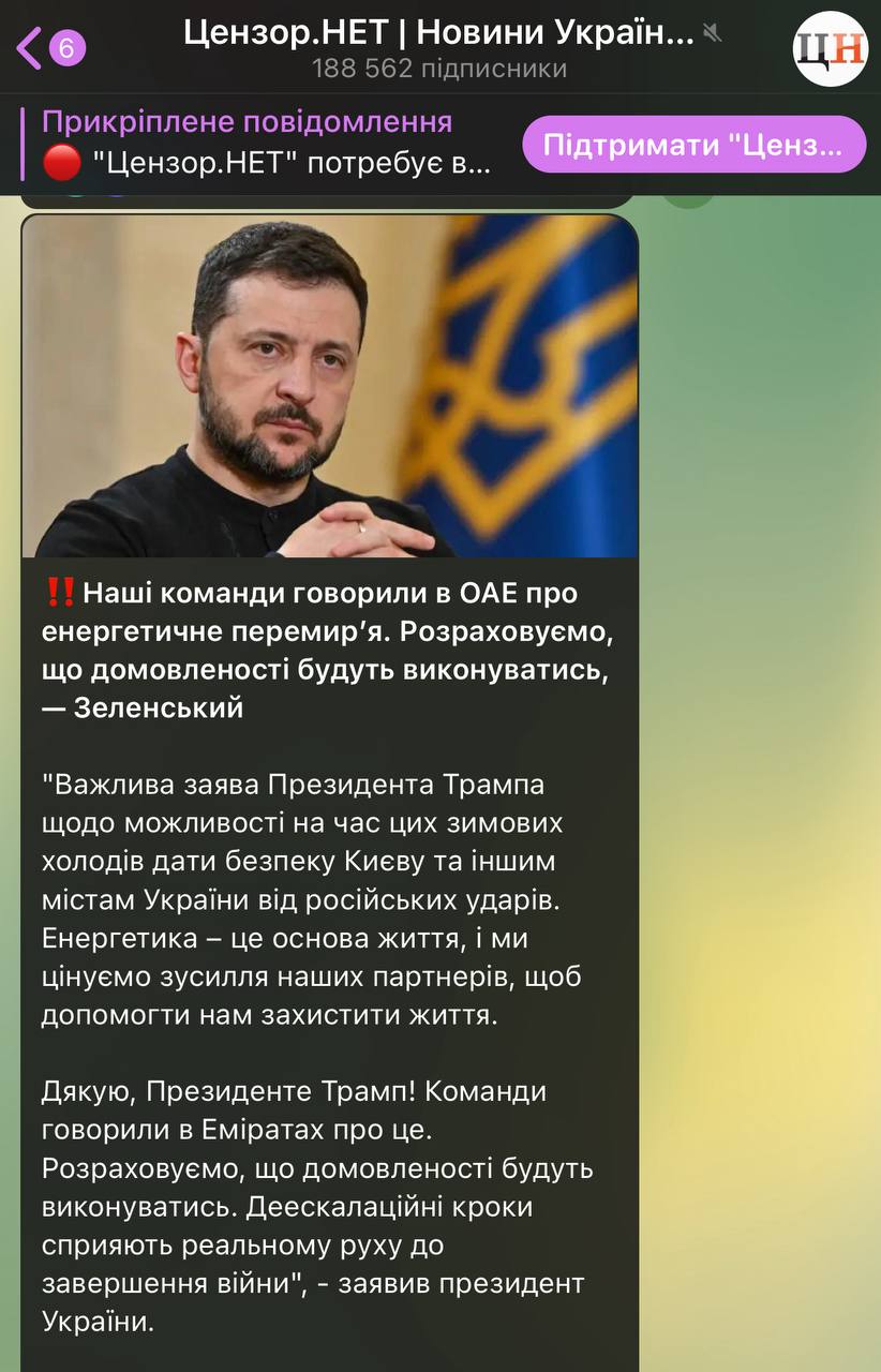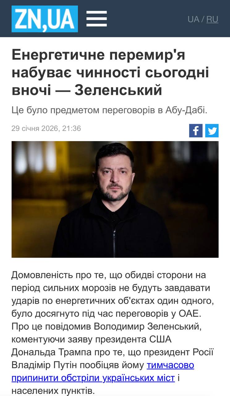 Хоча президент Володимир Зеленський ні в дописі, ні в зверненні прямо не сказав про «енергетичне перемирʼя», тим самим підтвердивши нашу інформацію, що у владі не хочуть прямо та публічно його визнавати, попри це частині медіа «спустили» вказівку казати, що це «енергетичне перемирʼя».