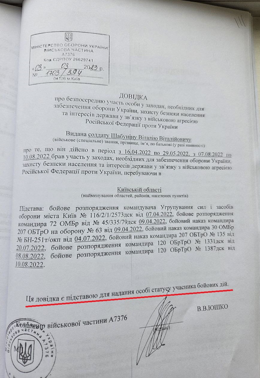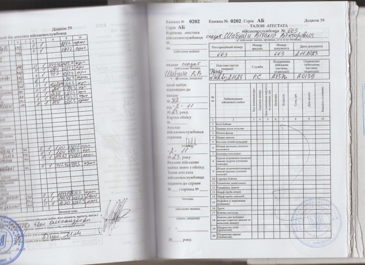 Він опублікував речові атестати солдатів Шабуніна та Шерембея, які їм видали у 2023 році при переведенні з 207 окремого батальйону Тр О в 101 окрему бригаду охорони Генштабу ЗСУ.