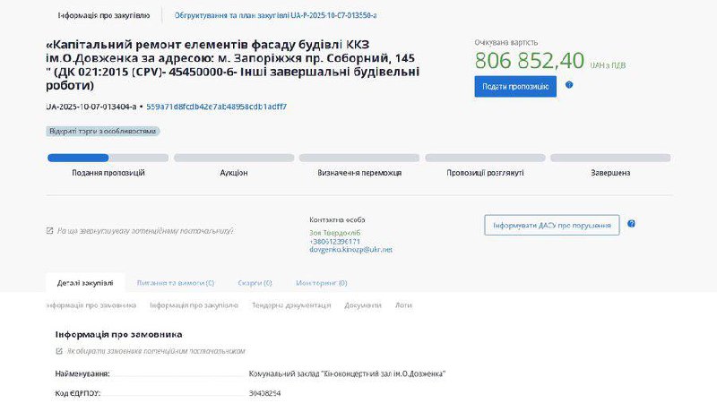 ️ У прифронтовому Запоріжжі хочуть за 800 тисяч відремонтувати фасад кінотеатру
