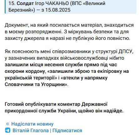 ️Скандал на Закарпатті: 15 військових Чопського прикордонного загону втекли в ЄС — документи від журналіста Глаголи Журналіст Віталій Глагола повідомив, що має у розпорядженні внутрішні […]