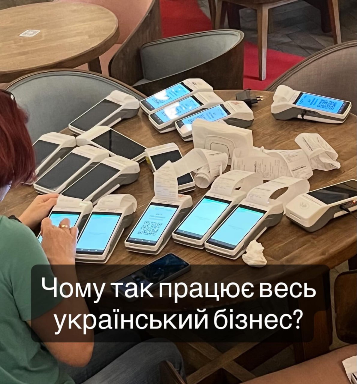 Але потім я бачу картину, яка мене здивувала. Просто посеред залу бухгалтерка виклала на стіл шістнадцять касових апаратів. Так вона просто виконувала свою роботу-вела бухгалтерський облік львівського ресторану, який працює на 16 ФОПах.