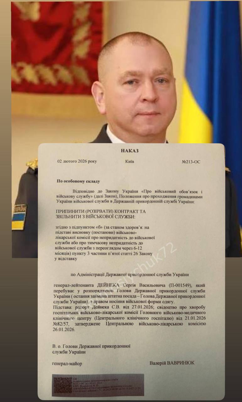️Ексголову ДПСУ Дейнека таки звільнили за рішенням ВЛК про непридатність – документ