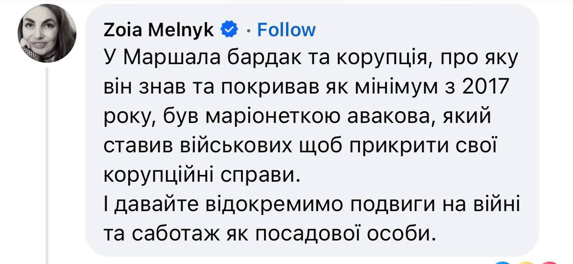 У Маршала бардак та корупція, про яку він знав та покривав як мінімум з 2017 року, був маріонеткою авакова, який ставив військових щоб прикрити свої корупційні справи.