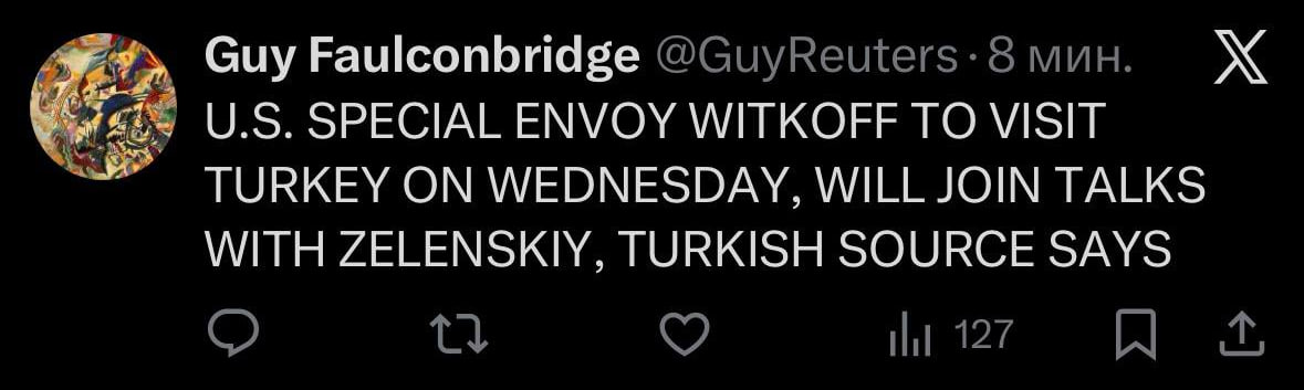 Посланець Трампа Віткофф завтра зустрінеться з Зеленським в Туреччині – керівник московського бюро Reuters Гай Фолконбрідж