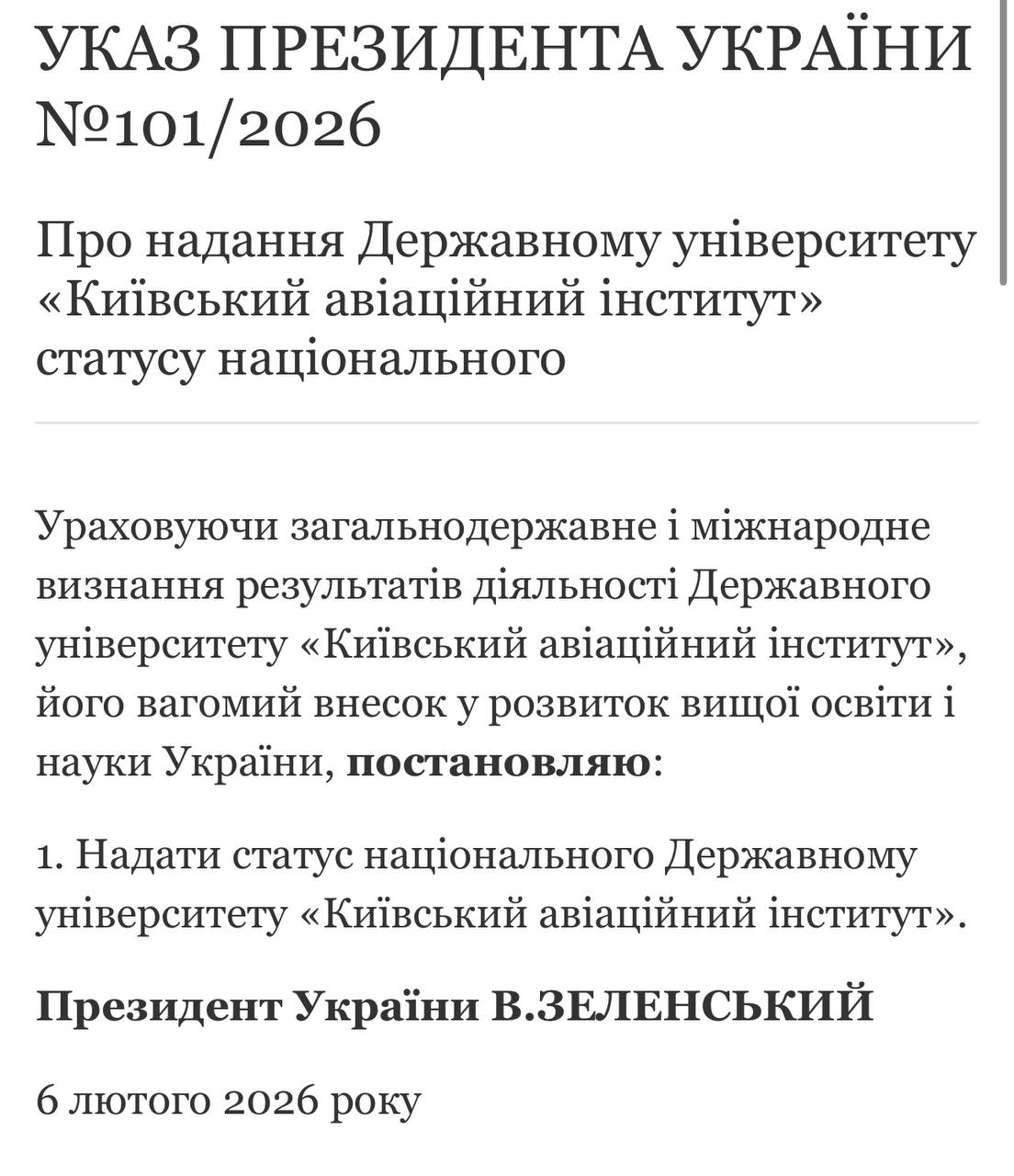 Зеленський надав статус національного Державному університету «Київський авіаційний інститут»