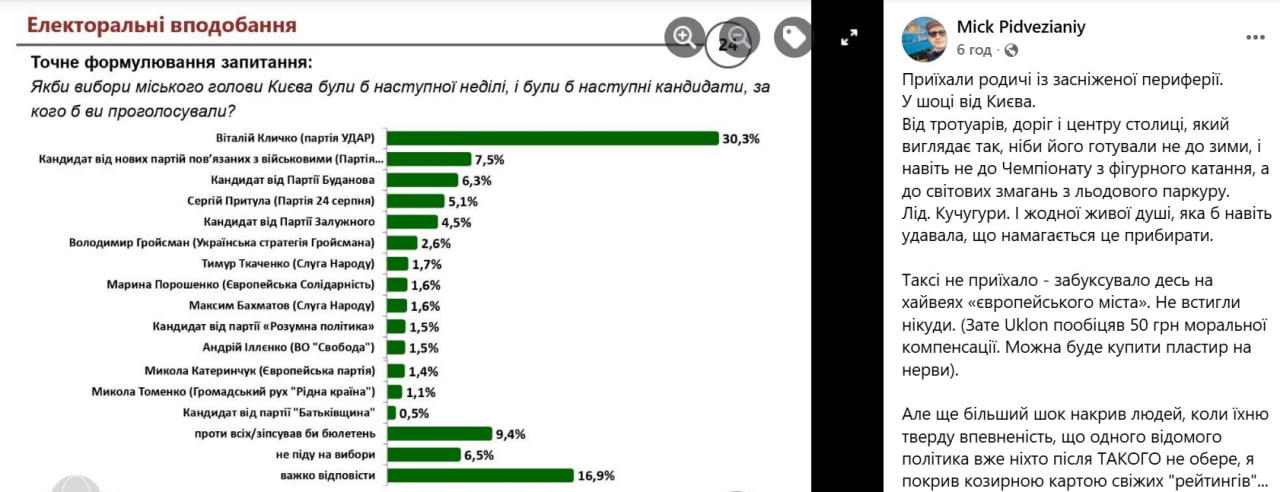 ️ Протягом останнього тижня Віталій Кличко намагається нав’язати думку щодо власної безальтернативності в Києві, поширюючи у ЗМІ дуті рейтинги соціологічної фірми Active Group та маловідомого видання Політарена, близьке до оточення Петра Порошенка, з тезою про те, що «на майбутніх виборах більшість киян підтримали б чинного мера Віталія Кличка і партію УДАР».