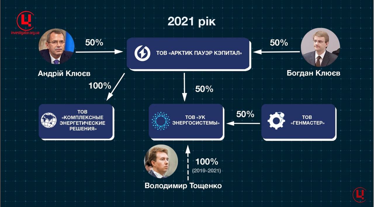 Ще у 2021 році родина Клюєвих обзавелася «Арктик энерго капитал», яка на сьогодні перетворилася в групу компаній. Ці компанії в обхід санкцій постачають російським підприємствам, зокрема повʼязаним з енергетикою та оборонкою, імпортне обладнання і матеріали. Від генераторів американської Caterpillar — до антикорозійних фарб французької MAESTRIA.