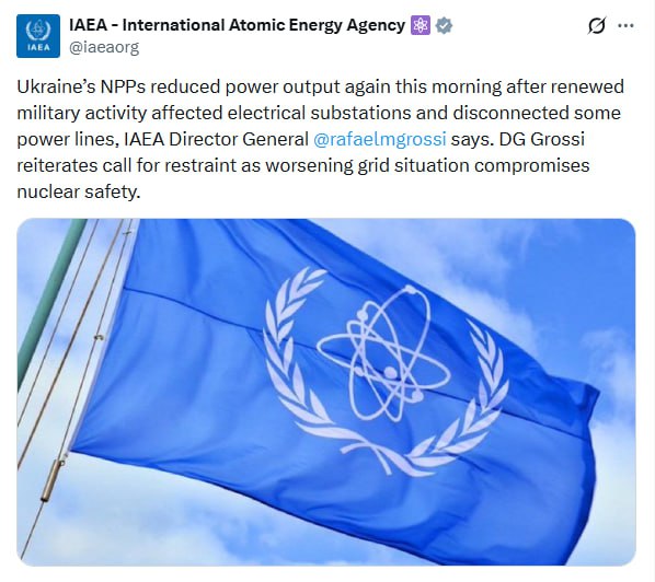 ️️МАГАТЕ заявило про зниження потужності українських АЕС після ударів РФ по підстанціях і відключення ліній електропередач