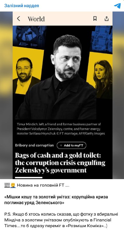 Корупційний скандал уряді Зеленського потрапив на першу шпальту Financial Times