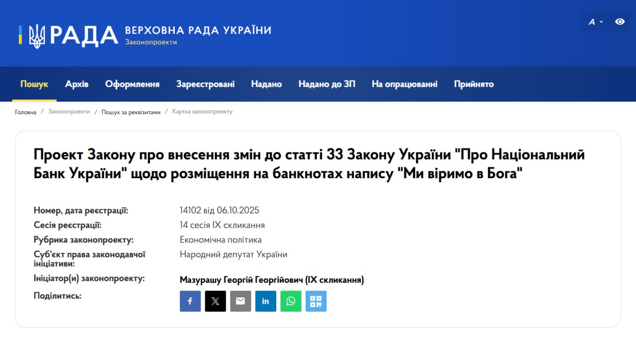"Слуга народу" Мазурашу пропонує розміщувати на банкнотах напис "Ми віримо в Бога"