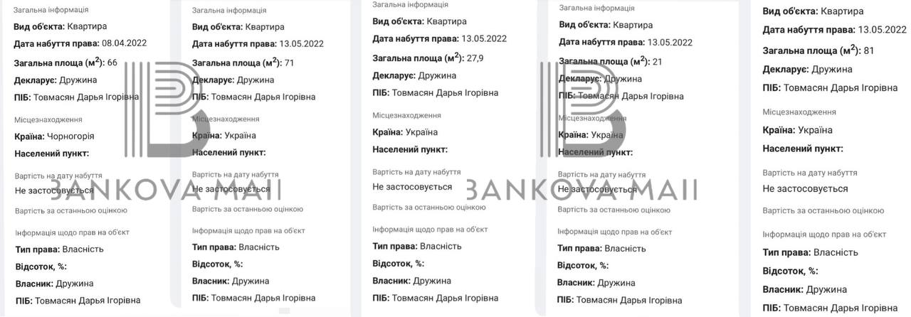 Його дружина Дар’я у травні 2022-го купила чотири квартири в Києві за один день, а ще купила нерухомість в Чорногорії.