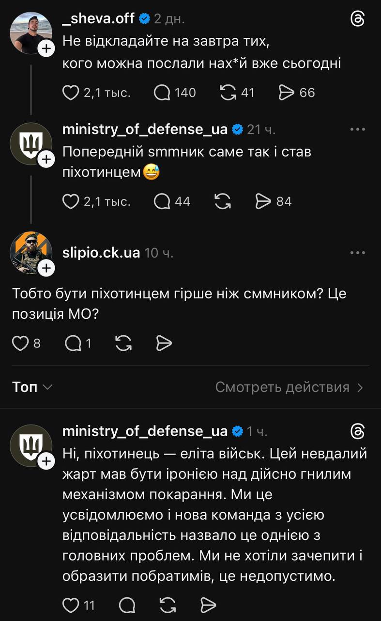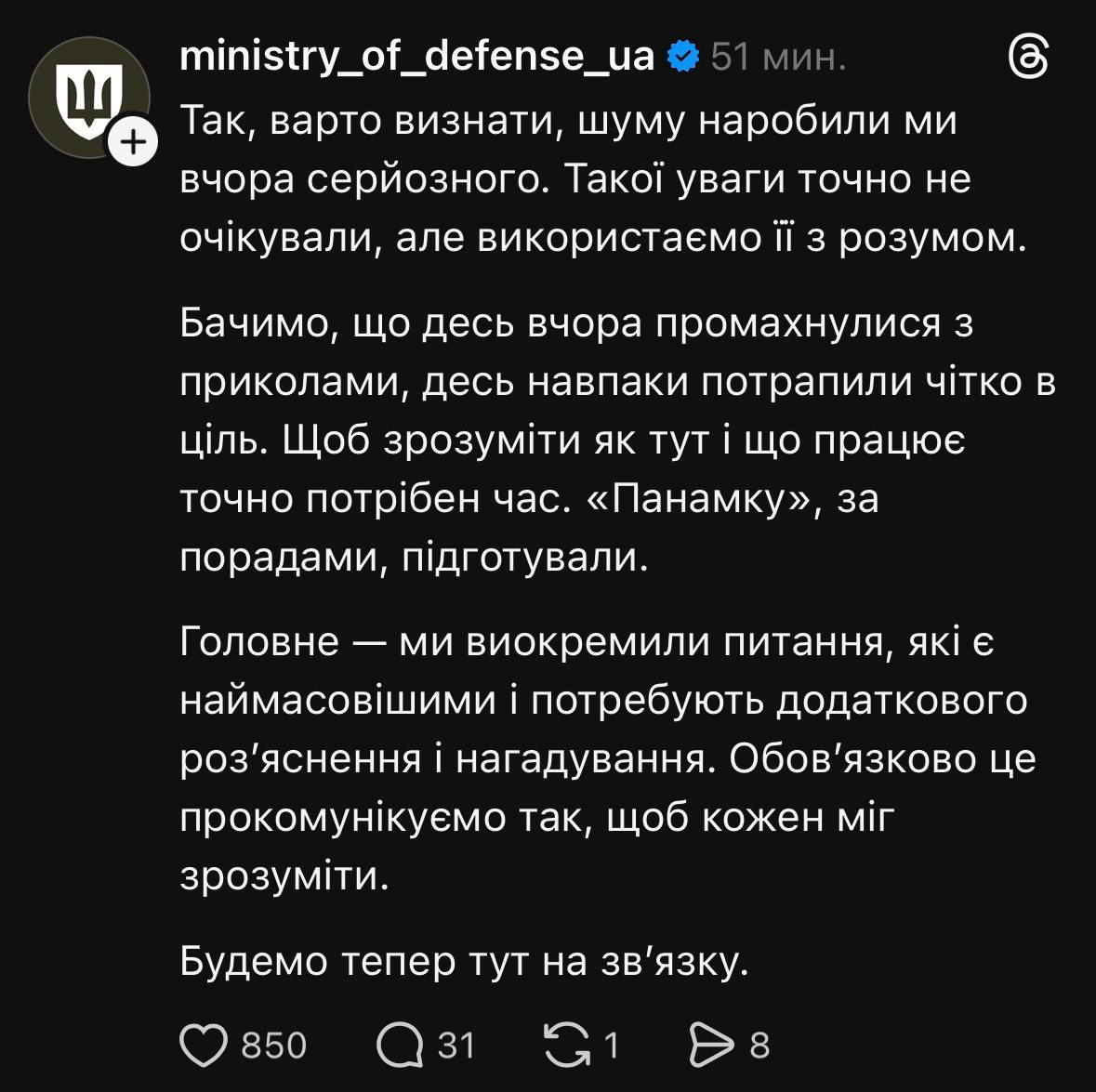 Міністерство оборони вирішило з гумором «залетіти» в Threads, але їх за тамтешніми традиціями одразу прокатили на «шакалячому експресі»