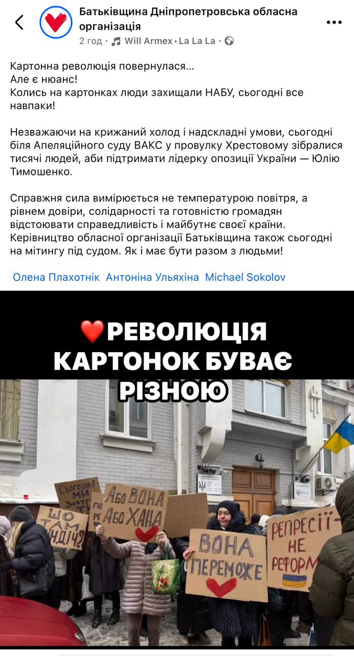 В описі до відео гордо написали, що тисячі людей підтримують Тимошенко, щоправда, навіть на опублікованих кадрах видно, що людей насправді прийшло дуже мало.