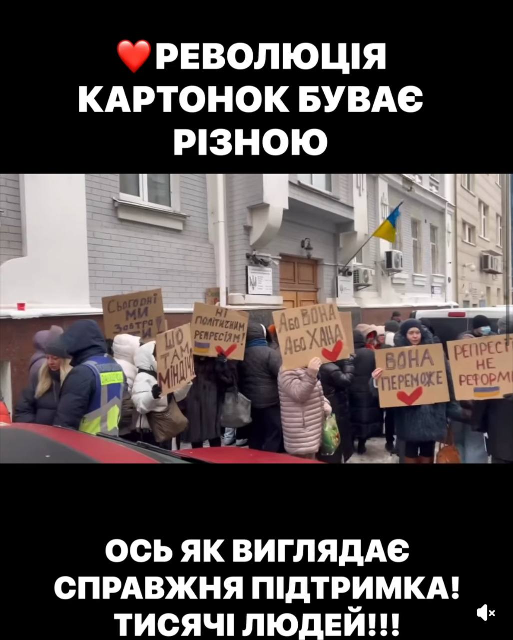 В описі до відео гордо написали, що тисячі людей підтримують Тимошенко, щоправда, навіть на опублікованих кадрах видно, що людей насправді прийшло дуже мало.