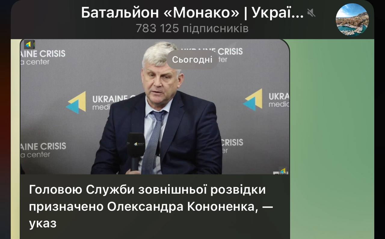 Ряд тг-каналів поширив інформацію про призначення Кононенка очільником СЗР, серед них і нардеп Железняк. Всі посилаються на указ президента, проте на сайті ОП такого указу немає