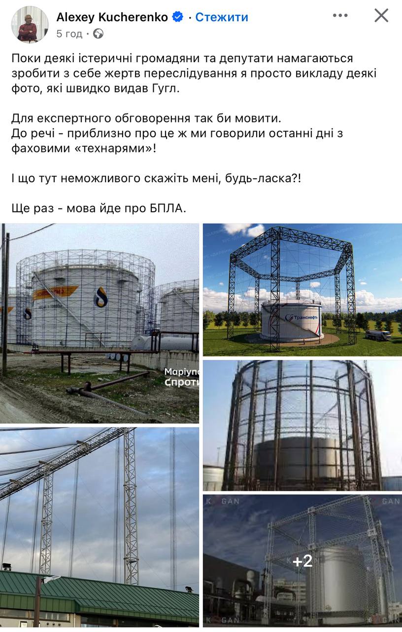 Нардеп Олексій Кучеренко, близький до Ріната Ахметова, на тлі скандалів із недостатнім захистом критичних обʼєктів, вирішив на прикладі росіян показати, як можна їх захищати У цьому ж дописі нардеп, заразом, вдався до критики політиків, які сперечаються з цього приводу в публічному просторі. Нагадаємо, раніше повідомляли, що Кучеренко нагнітав ситуацію навколо теми опалювального сезону. Крім того, писали, що він інформаційно підігрує Міненерго.