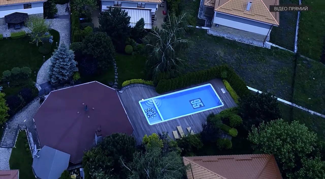 5 років тому цей будинок родина Кісєля придбала у Володимира Зеленського. Про нього тут досі нагадує цифра 95 на дні басейну. Його вартість оцінюють у 13,5 млн грн. При чому незадовго до покупки Валентина позичила 5,4 млн грн у помічника президента Сергія Шефіра.