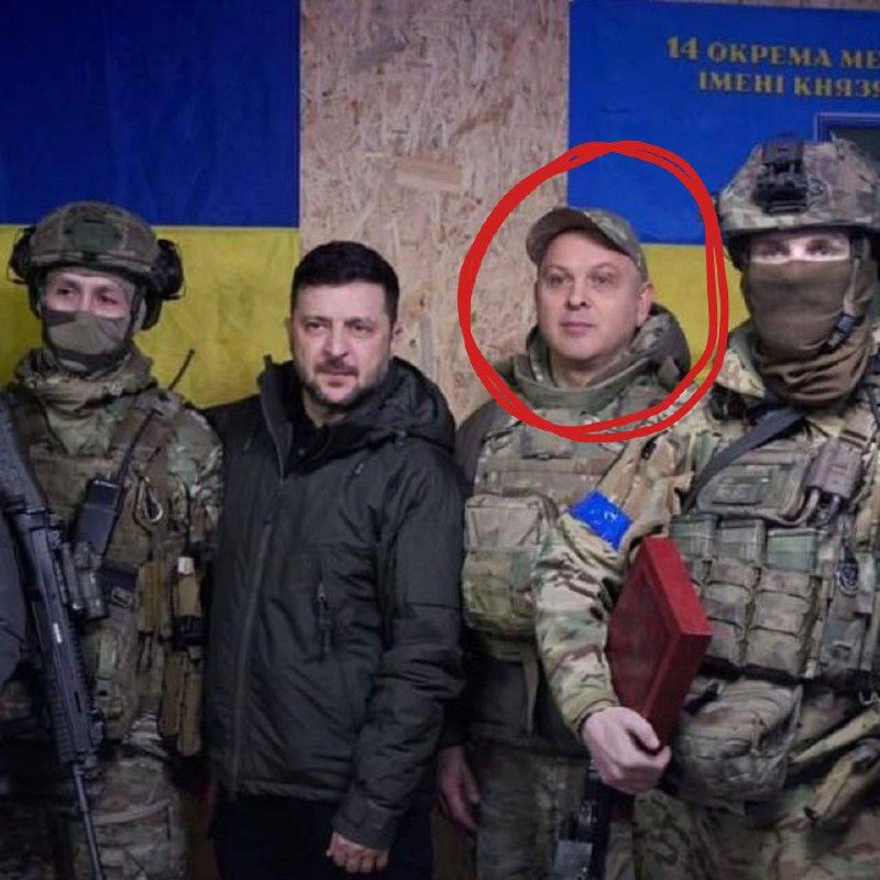 На фото біля Зеленського скористався можливістю прилаштуватися ніхто інший, як відомий харківський бандит, рейдер Олег «Испанец» Черкашин, який наразі освоївся в горезвісній 14-й бригаді. «Испанец» працював під «дахом» Харківського «Опозиційного блоку», проросійської партії, спадкоємиці «Партії регіонів», – пише нардепка Марʼяна Безугла.