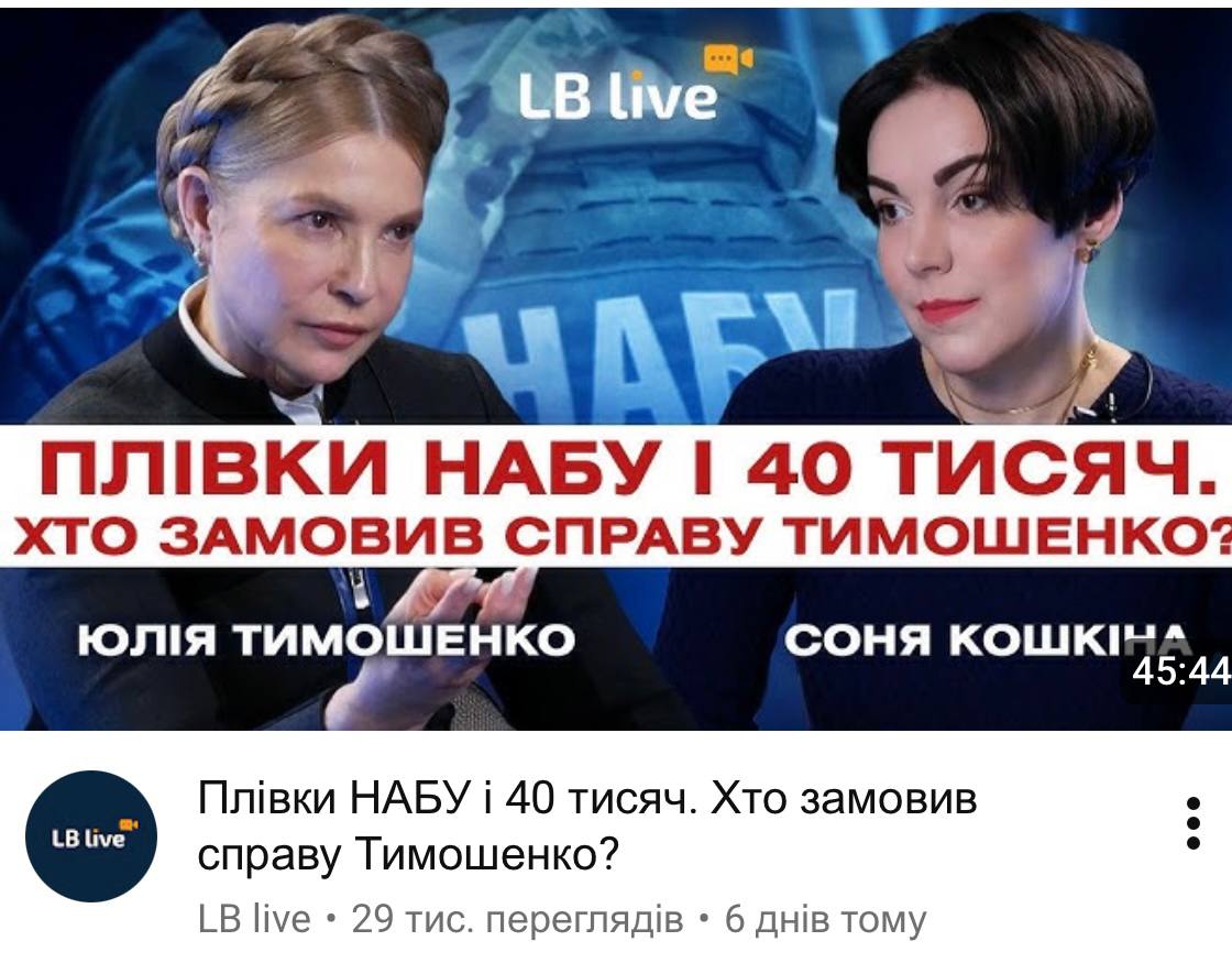 Низькі перегляди інтерв’ю Тимошенко: невдоволення співпрацею з Кошкіною