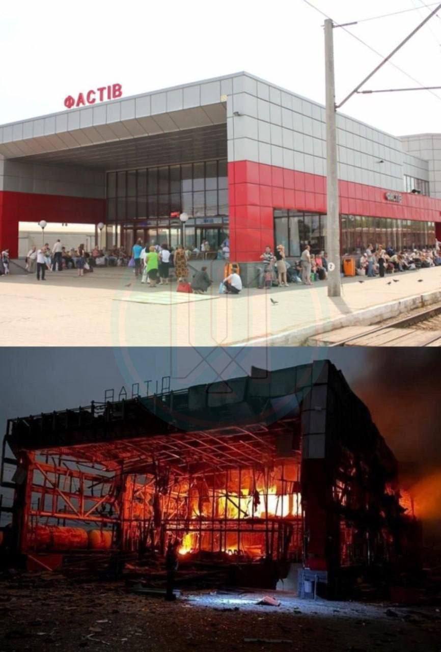 ▪️ Пошкоджена залізнична вузлова станція Фастів, вокзал, приміське депо та рухомий склад.