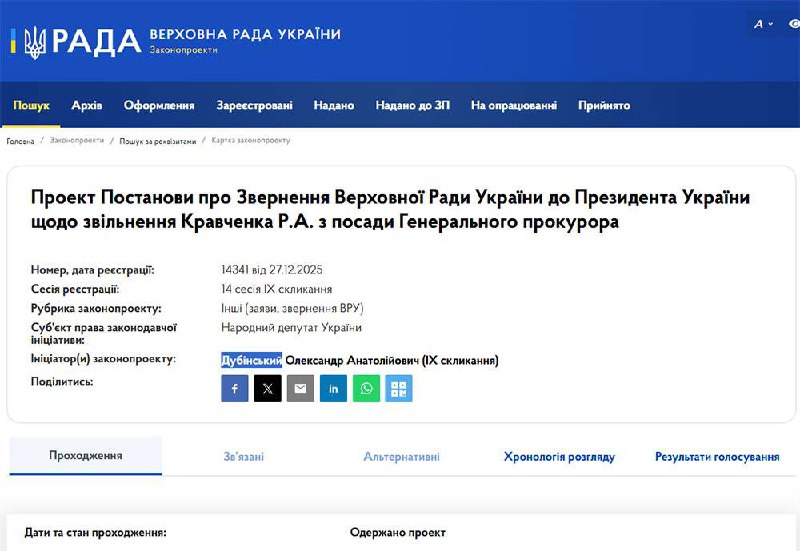 Підозрюваний у держзраді Дубінський із СІЗО зареєстрував проєкти постанов про звільнення голови СБУ Василя Малюка і Генпрокурора Руслана Кравченка Станом на ранок 28 грудня, на […]