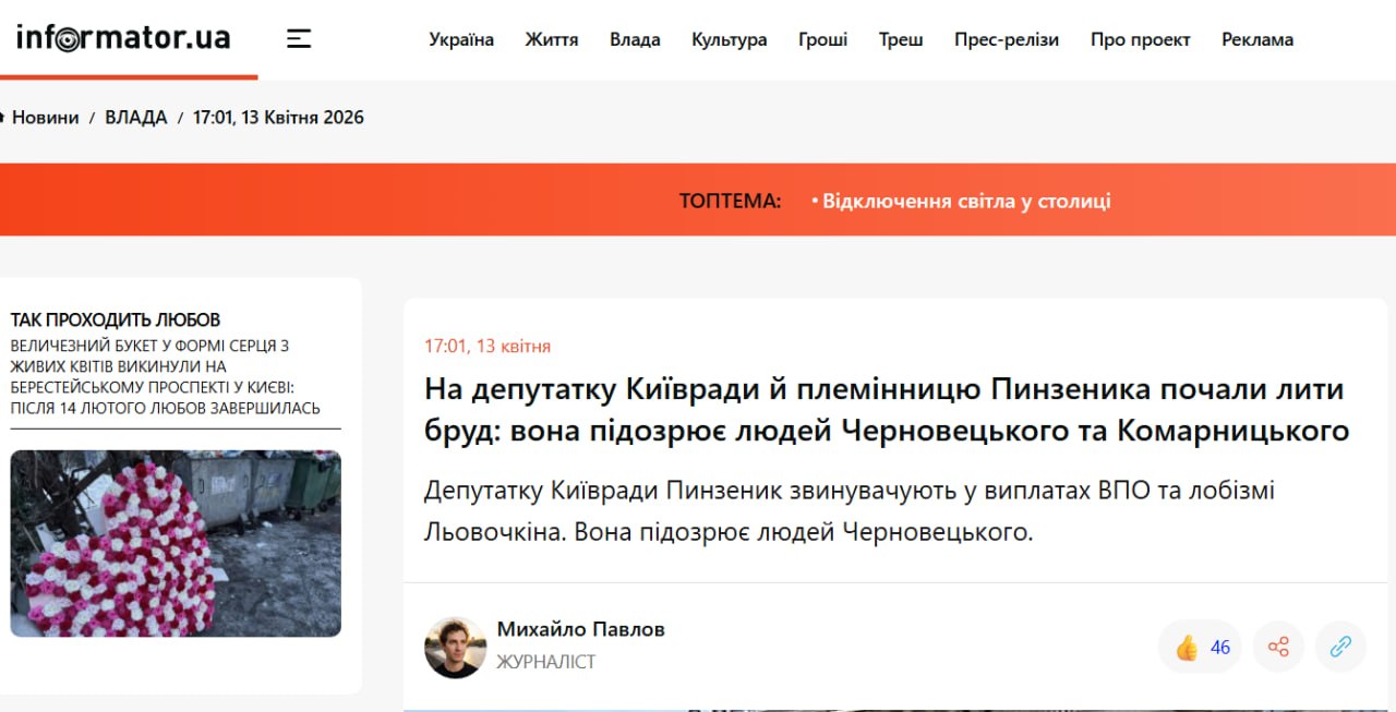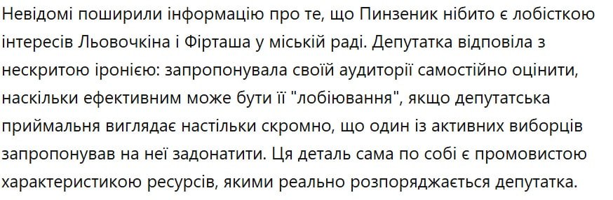 Депутатка від УДАР Олеся Пинзеник спробувала спростувати свої зв’язки з командою Фірташа-Льовочіна і пішла на Укрнет, який контролює команда Кличка та через замовну статтю