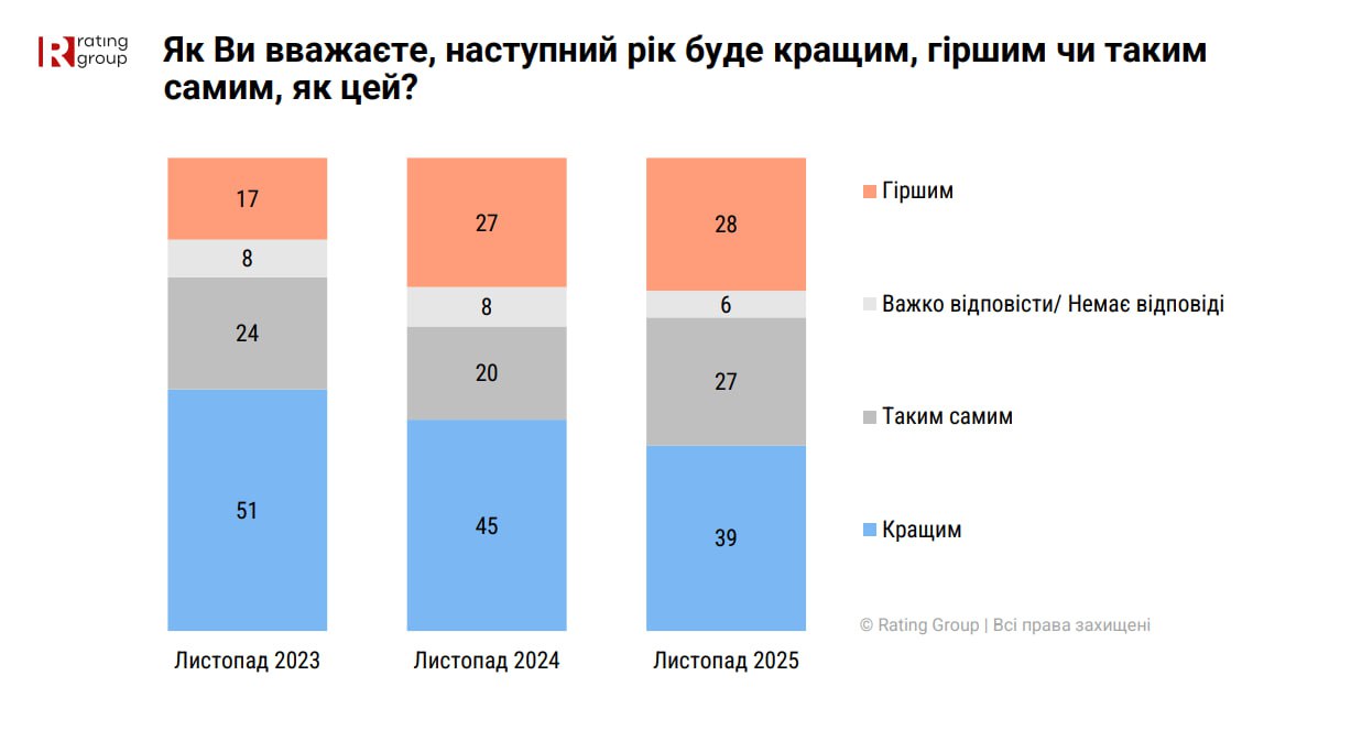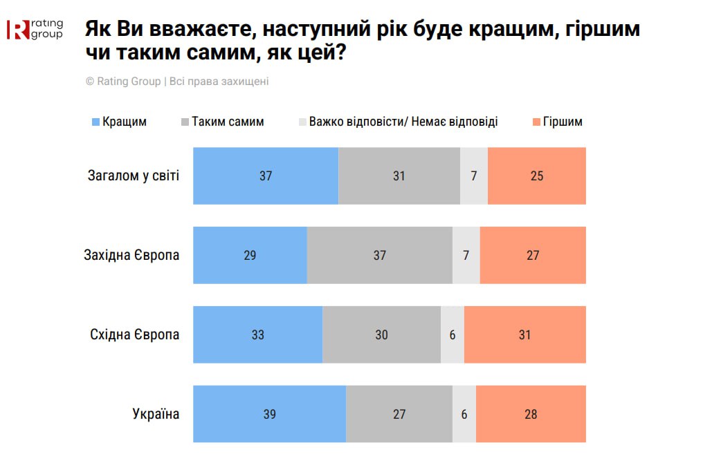 39% українців вважають, що 2026 рік буде кращим — опитування Rating Group у рамках дослідження Gallup International End of Year